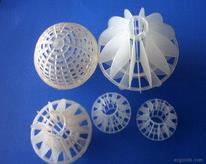 采用聚丙烯塑料制成球狀,在球中部沿整個(gè)周長有一道加固環(huán),環(huán)的上下各有十二片球瓣,沿中心軸呈放射形布置,適用于二氯化碳脫氣塔,接觸反應(yīng)塔等裝置。