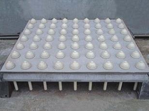 我公司制作的水泥濾板采用平板鋼模澆制。濾板為鋼筋混凝土濾板,由耐酸、耐腐蝕及能承受壓力的鋼筋混凝土材質(zhì)制作,水泥標(biāo)號采用425#普通硅酸鹽水泥,其抗壓強度>42.5Mpa,抗拉強度>6.4.Mpa,初凝時間大于20分鐘,終凝時間小于10小時。碎石采用公稱粒徑5-25mm,針征狀含量≤15%,含泥量≤1%,砂采用天然石英砂。濾板嚴(yán)格執(zhí)行國家有關(guān)標(biāo)準(zhǔn),按設(shè)計要求計算開孔比,預(yù)埋ABS工程塑料預(yù)埋套管、配雙層雙向優(yōu)質(zhì)螺紋鋼筋,高標(biāo)號水泥、標(biāo)準(zhǔn)細(xì)石和石英砂,經(jīng)機械攪拌,搗實澆制而成。